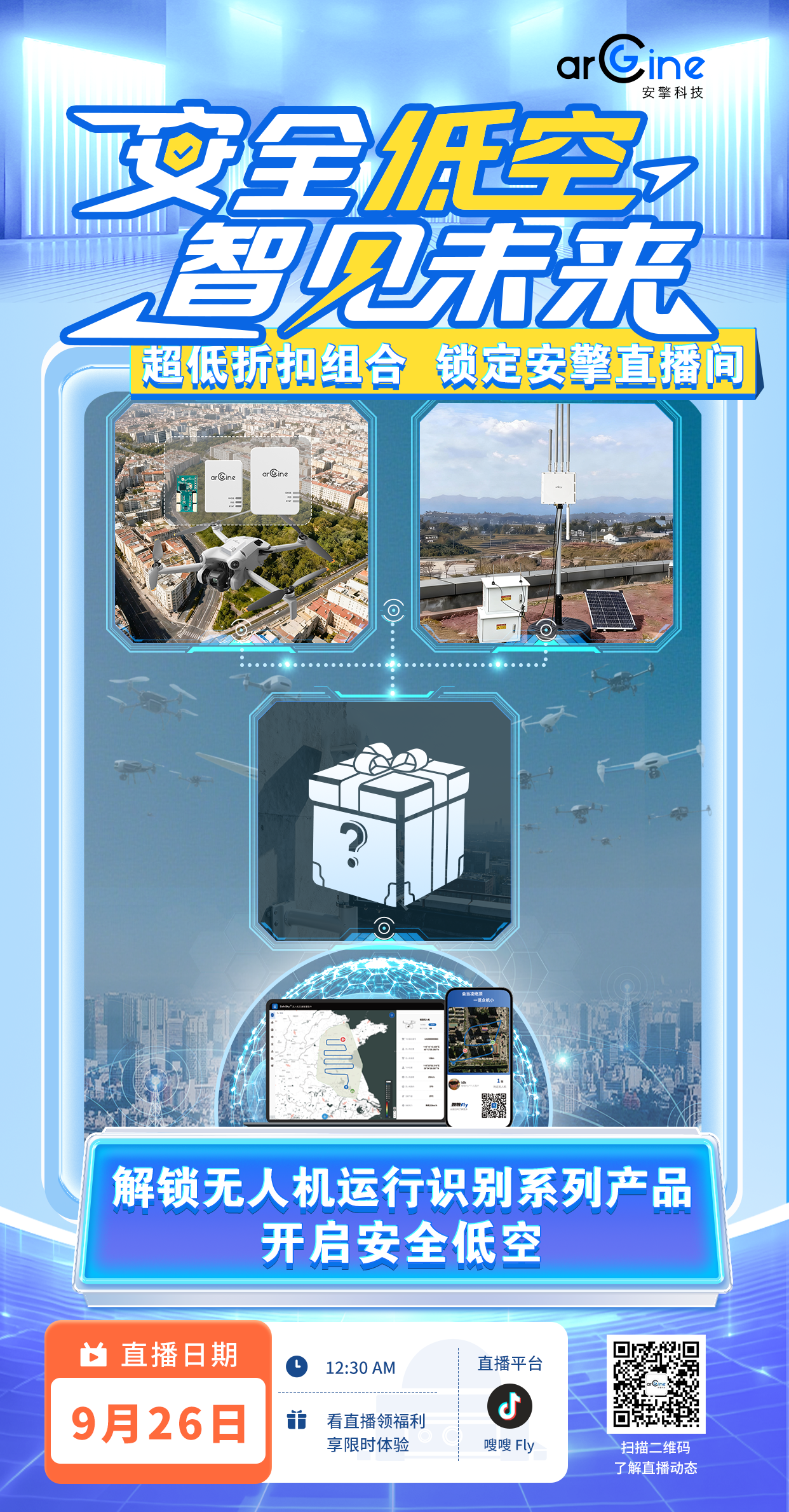 为全面展示低空运行识别系列产品,安擎科技将于【2025年9月26日12:30 AM】举办线上直播。届时,安擎科技首席运营官、产品专家石砳先生为大家进行讲解,将结合实际案例,深入解读无人机运行识别系列产品在城市管理、重大活动保障、要地防护等不同场景中的应用情况。直播间还有福利抽奖和互动答疑环节,在此,安擎科技欢迎所有关注低空经济发展的朋友们莅临线上直播间,共同探讨低空新未来。